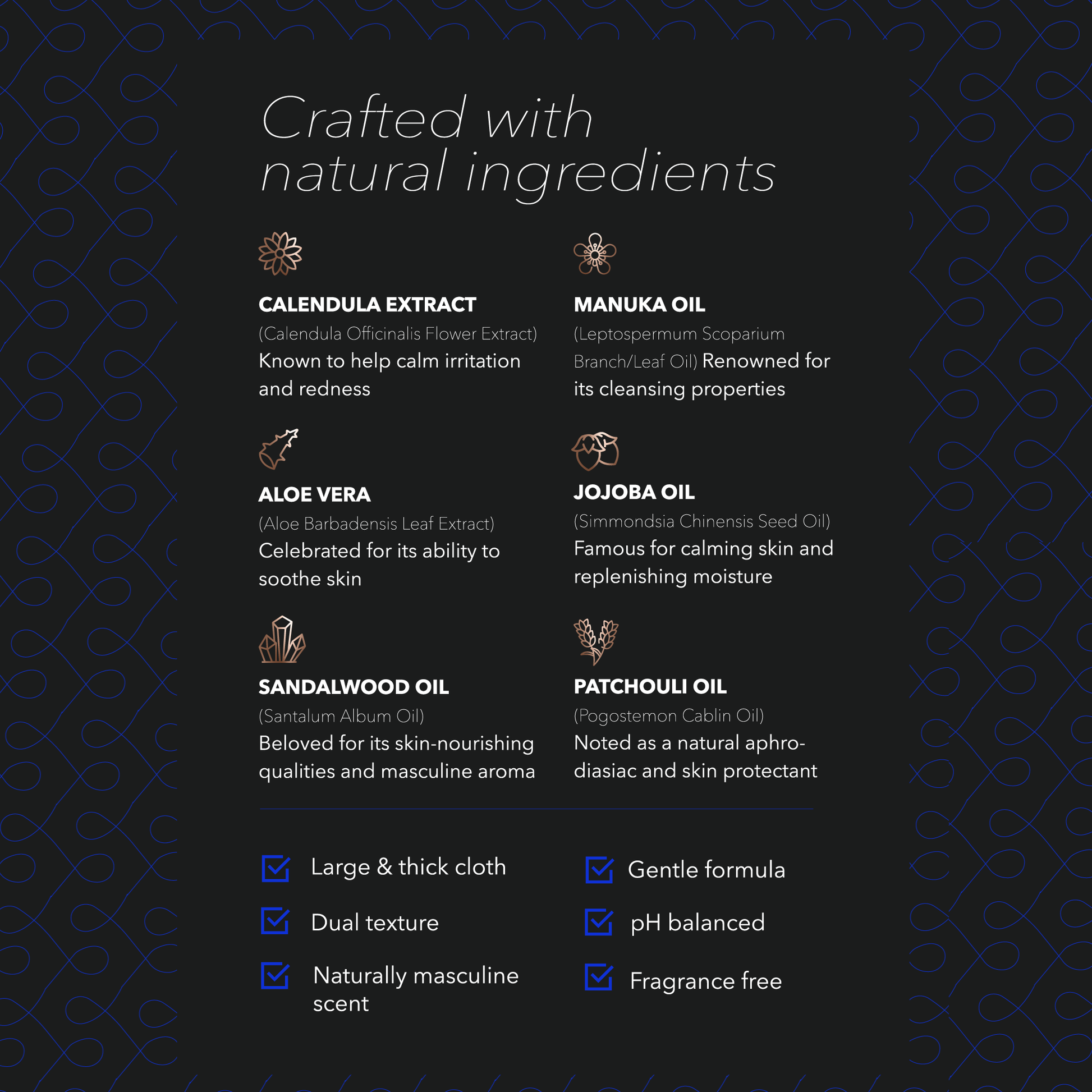 Elevate your hygiene routine with Willy Wipes®. Each large and thick wipe has a textured side to help remove buildup and odor, and a smooth side for a clean finish. The paraben-free formula includes calendula extract and manuka oil for their skin cleansing and healing properties, ultrafine bicarbonate to gently and naturally neutralize odor, aloe vera and jojoba oil for their ability to soothe skin and replenish moisture, a naturally masculine scent and even a natural taste (wink). Perfect for all men who take personal care seriously, especially those who are uncut. It's fresh intimate skin on demand. No water required!