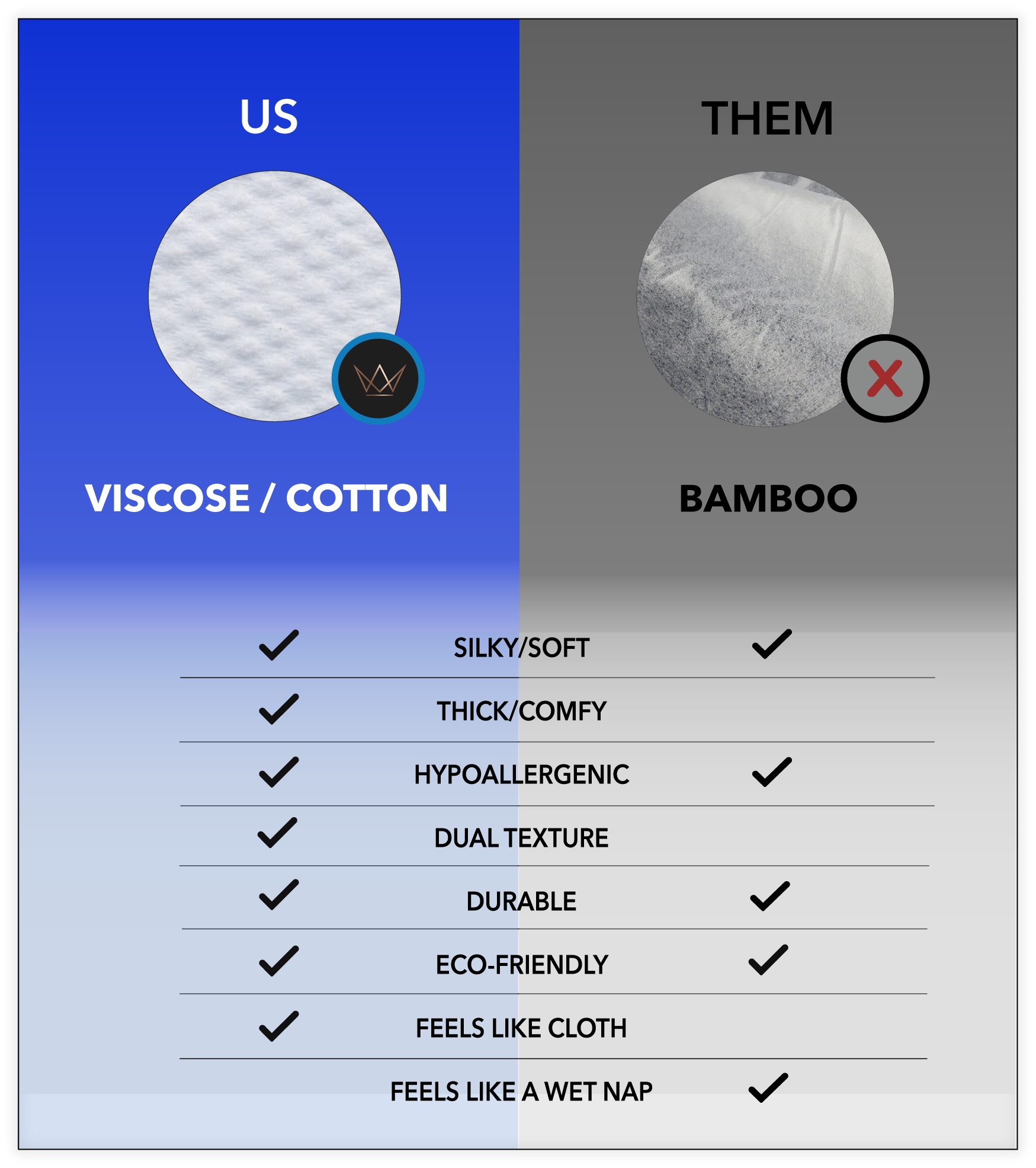 Nossa mistura de viscose/algodão proporciona conforto superior, com maciez e respirabilidade incomparáveis que elevam sua experiência além do bambu.